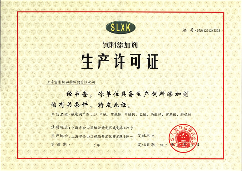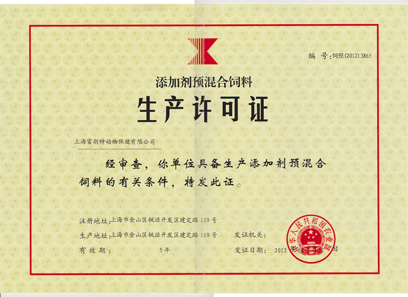 添加劑預(yù)混合飼料生產(chǎn)許可證書